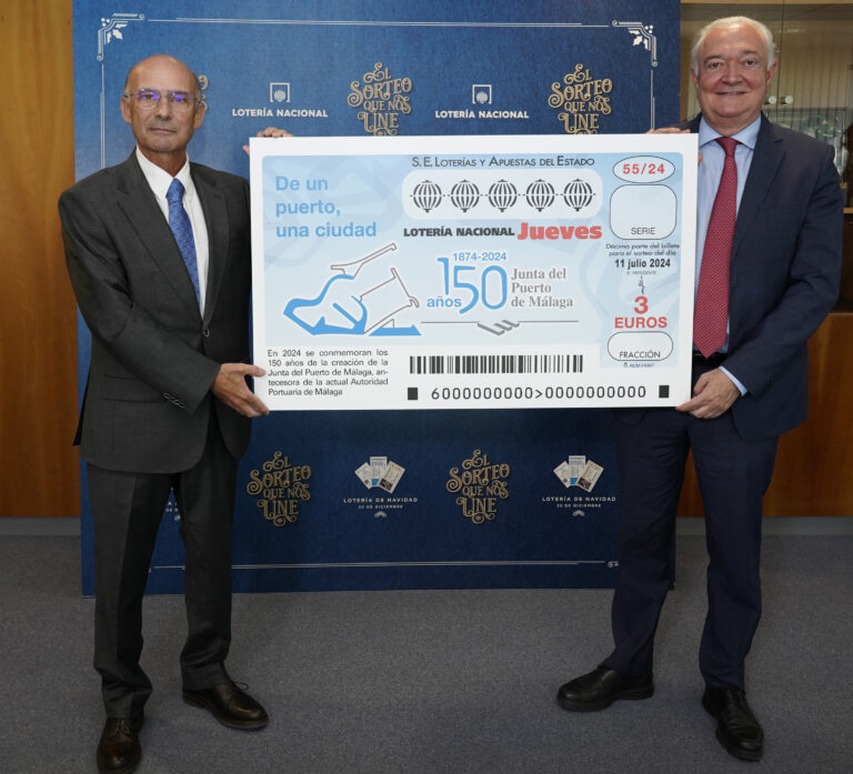 al 150º aniversario (1874-2024) de la creación de la Junta del Puerto de Málaga, antecesora de la actual Autoridad Portuaria. Dentro de su compromiso con la sociedad, Loterías quiere sumarse a esta efeméride que con el lema “De
