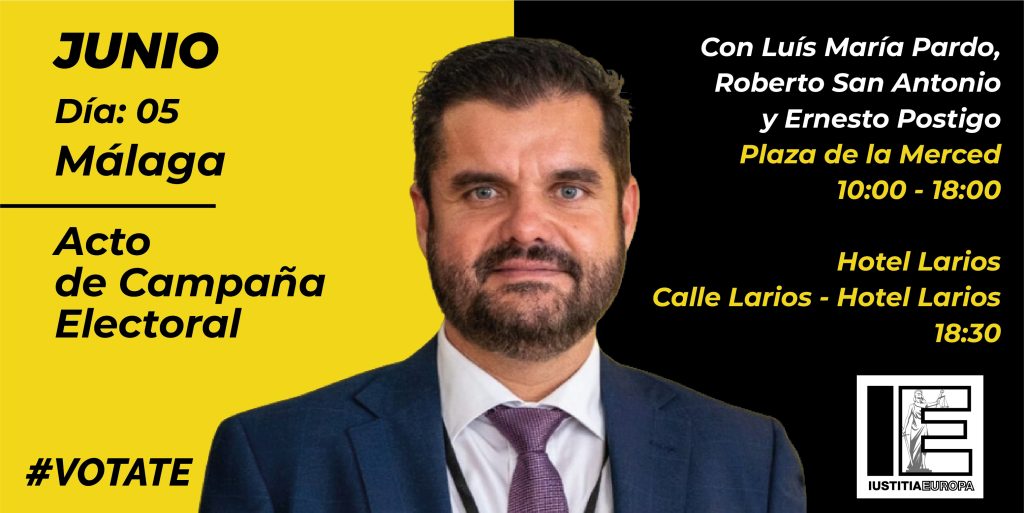 El presidente de Iustitia Europa, Luis Maria Pardo, asistira mañana 5 de junio, junto a miembros de su candidatura, a un acto de campaña electoral en Málaga, concretamente en la Plaza de la Merced desde las 11:00 hasta las 18:00 y en el Hotel Larios desde las 18:30.