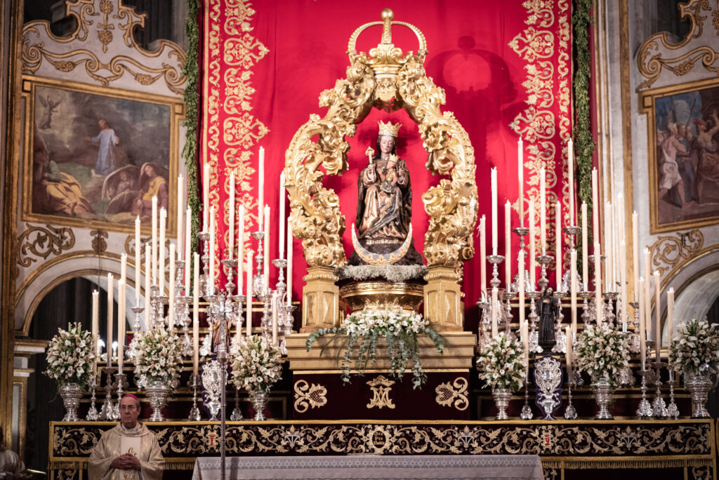 Salida procesional en honor de la Virgen de la Victoria, patrona de la ciudad de Malága, el desfile comenzo con la ofrenda floral en el interior de la Catedral.